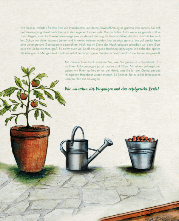 Alle Inhalte und Schritt für Schritt Anleitungen sind mit viel Liebe zum Detail handgezeichnet worden, sodass Sie leicht verständlich und unterhaltsam die Welt der Selbstversorgung in Ihre Wirklichkeit bringen können.